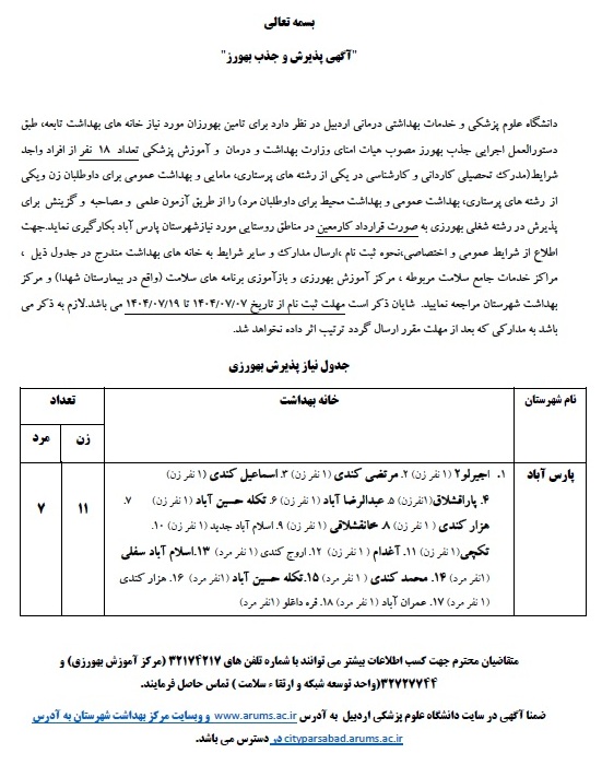 خلاصه آگهی پذیرش و جذب بهورز